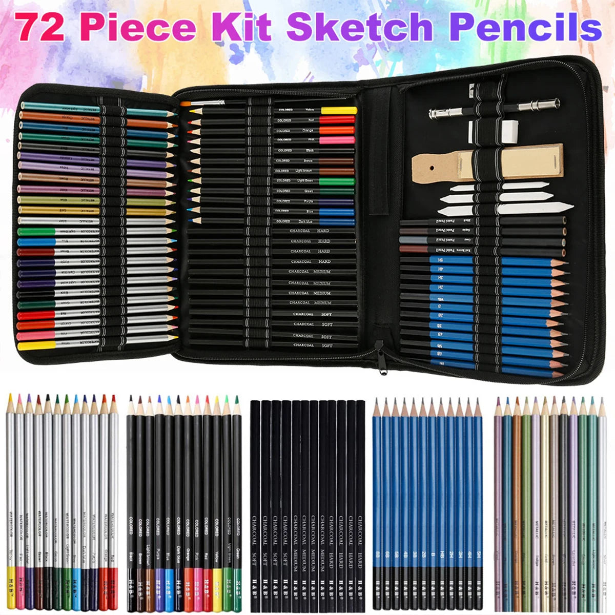 72Pcs Drawing Sketching Kit Set, Pro Art Supplies with Watercolor, Graphite, Colored, Metallic, Charcoal Pencil, Drawing Set