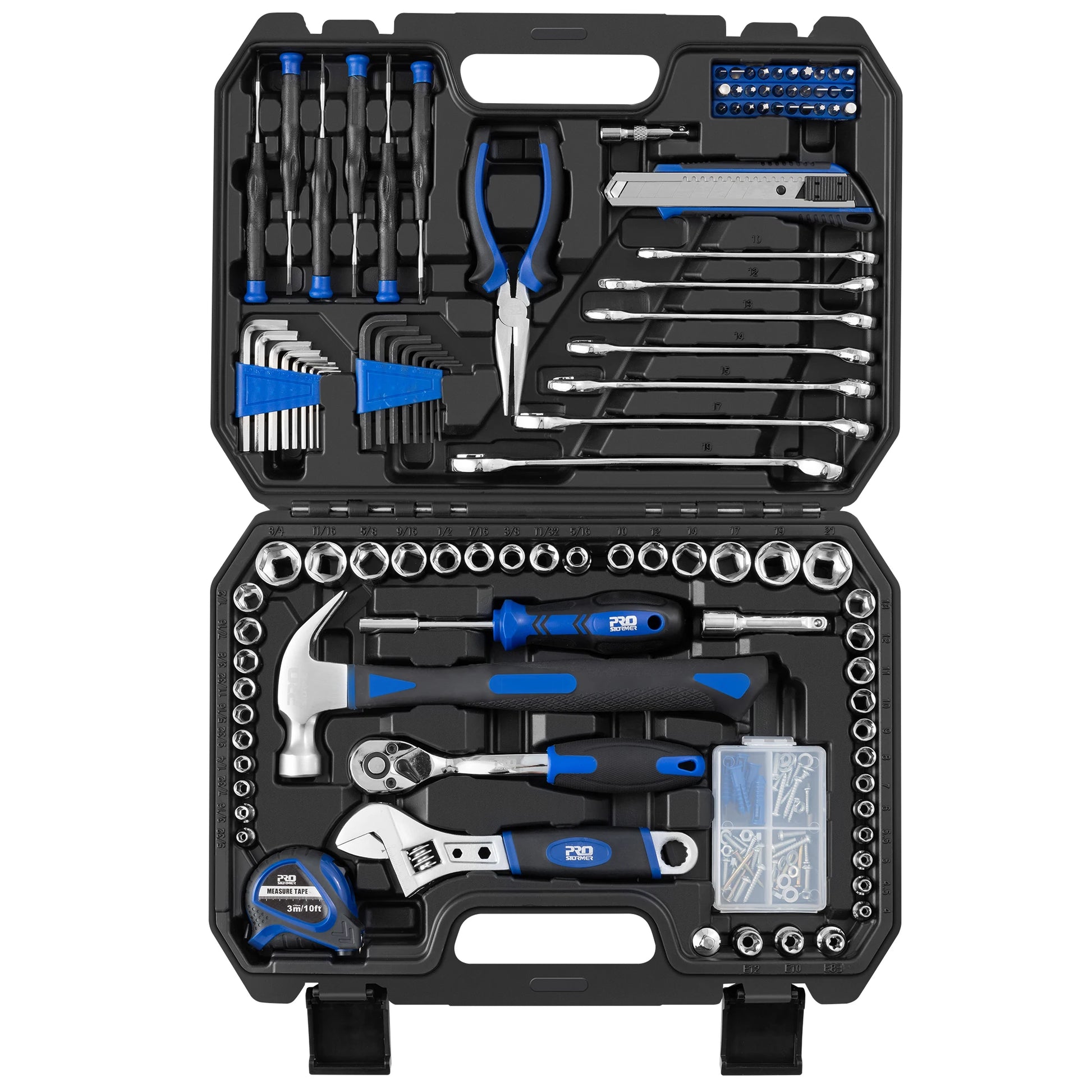 • [Storage Tool Box Included] - This tool set comes with a sturdy blow molded tool box for easy and organized storage and portability. Its sturdy interior and storage box keep all your tools in place.