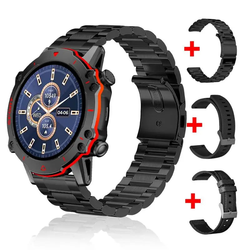 Fitness & Activity Tracker: Achieve your health and fitness objectives with this fitness watch for men. Keep track of your heart rate and stress levels in real-time, with immediate alerts for any irregularities. You can also monitor your menstrual cycle and ovulation predictions. Choose from over 100 sports modes to record steps, calories burned, distance, and speed. With IP68 waterproofing, our smartwatch is ideal for swimming and various activities.