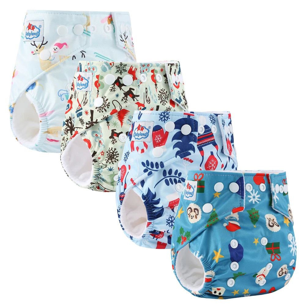 4pcs Babyland 2025 Washable Reusable Cloth Diaper Ecological Adjustable Real Pocket Nappy Underwear Fit 0-2year 3-15kg