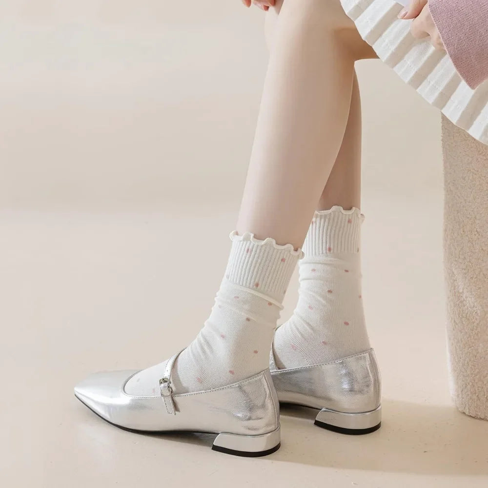 • Women’s Ankle Socks. The polka dot on the body of the socks and the Frilly cuffs beautifully accentuate the ankles, making your style more fashionable and eye-catching.
