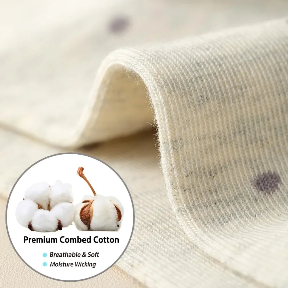 • Combed cotton socks are extra soft and smooth, providing a luxurious feel against your skin. They help keep your feet cool and dry, making them perfect for all-day comfort and freshness.