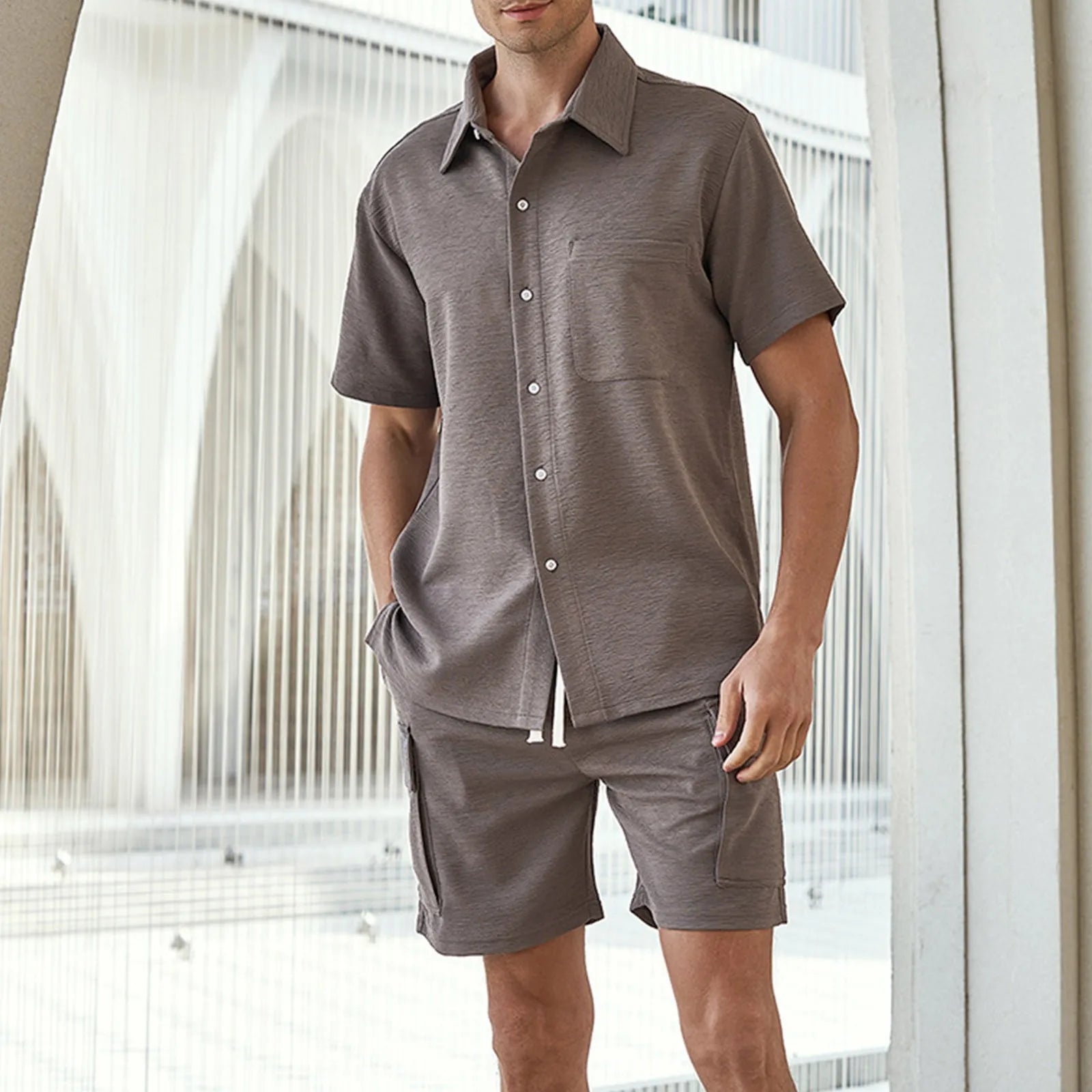 Button Down Shirts Beach Outfits Mens' Two Piece Set Short Sleeve Casual Cardigan And Shorts Two-Piece Suit Male Summer Clothes