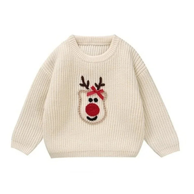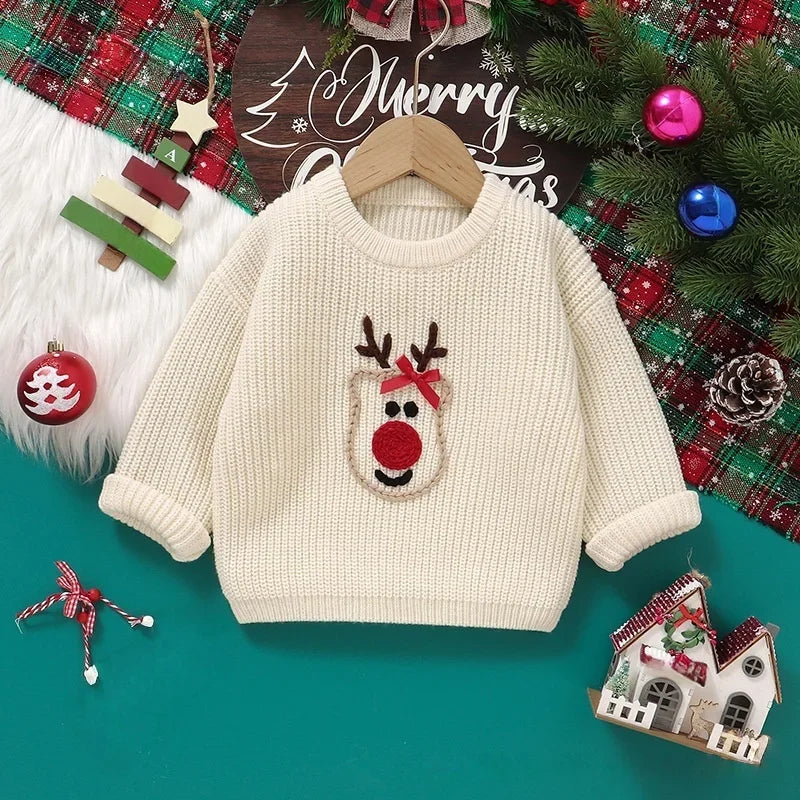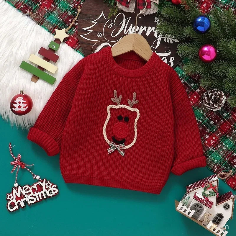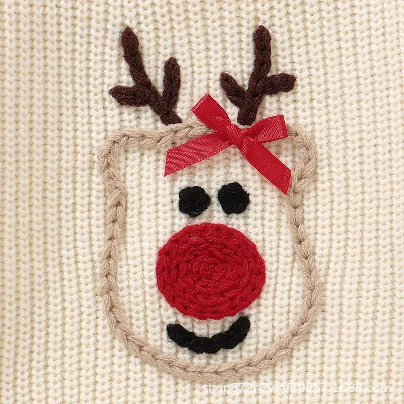 Child Sweater Christmas Reindeer Knit Sweater for Girls 0-5Y Baby Boy Clothes Reindeer Embroidered Pullover Festive Winter Wear