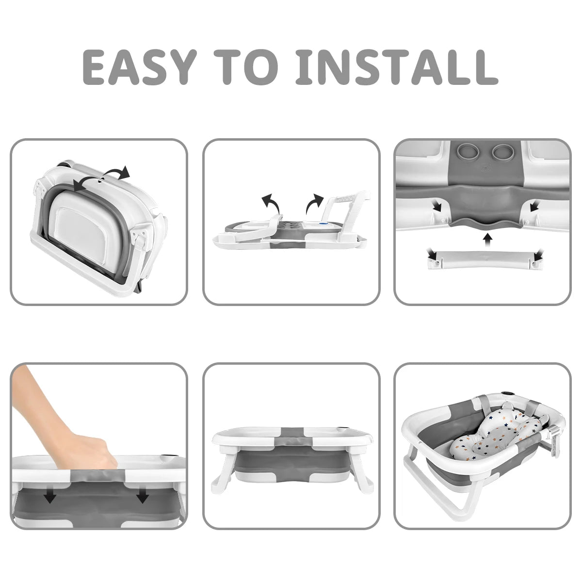 Foldable Baby Bathtub, Baby Bathtub With Soft Cushion And Thermometer, Portable Travel Baby Bathtub