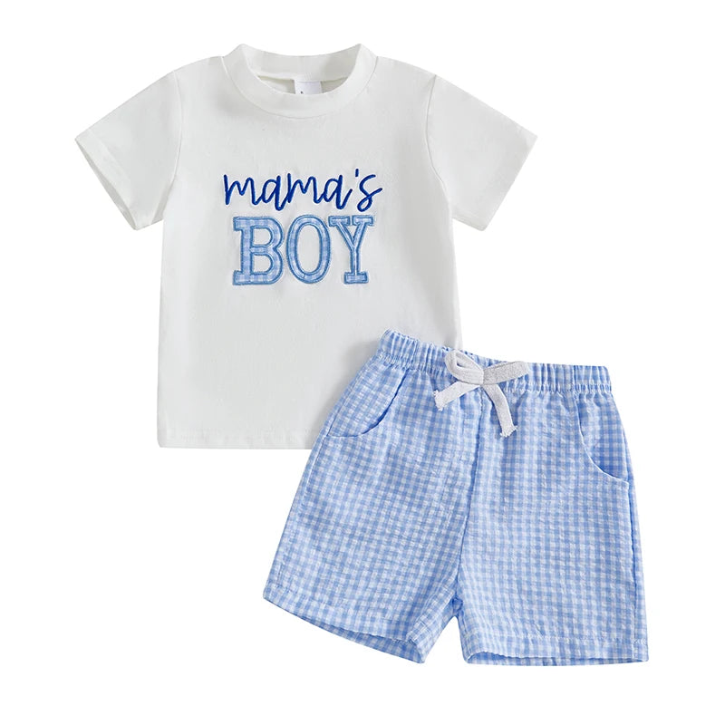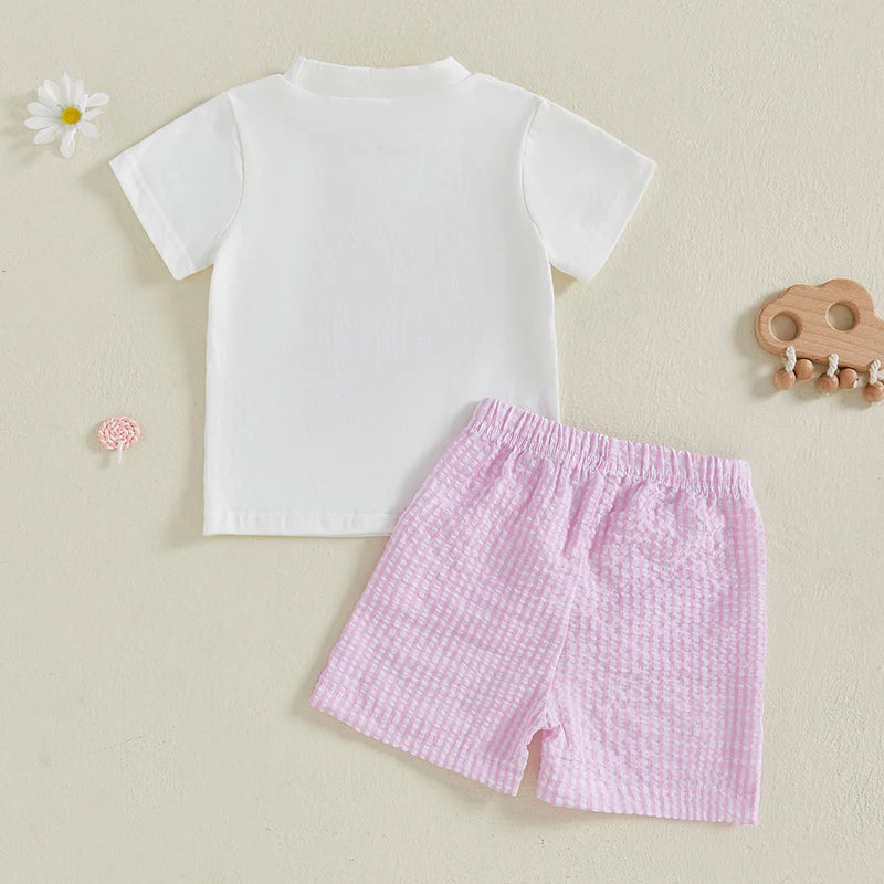 Baby Shorts Set Short Sleeve Letter Embroidery T-Shirt and Plaid Shorts Toddler 2 Piece Outfits