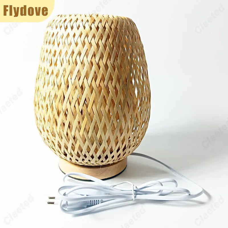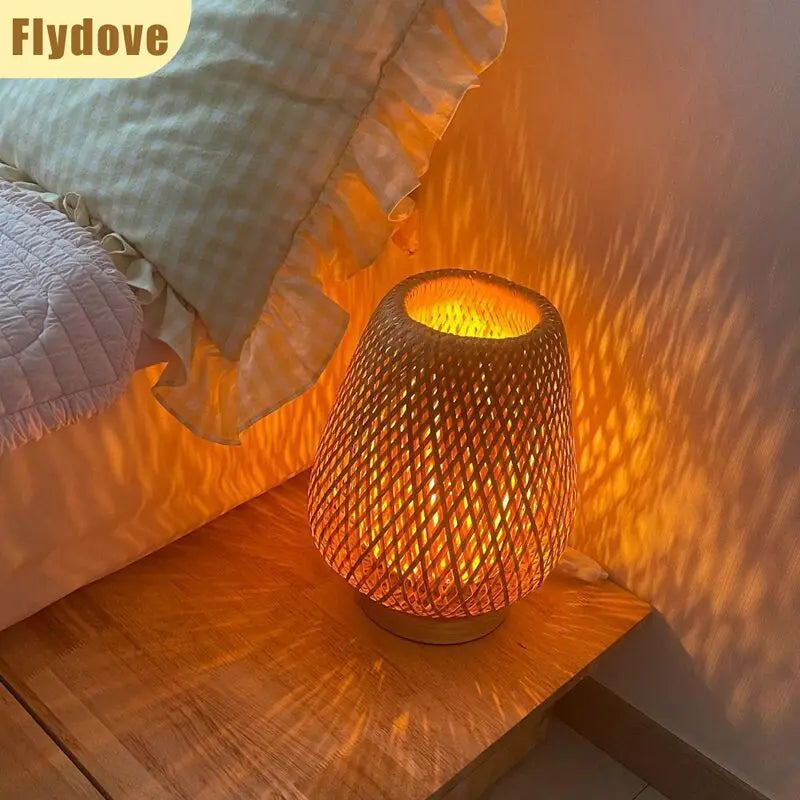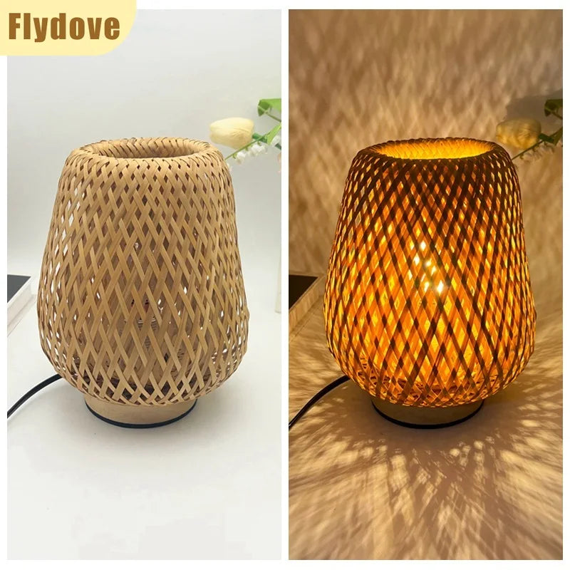 Ins Creative Retro LED Bamboo Weaving Table Lamp Restaurant Homestay Desk Decoration Atmosphere Projection Lighting Fixtures