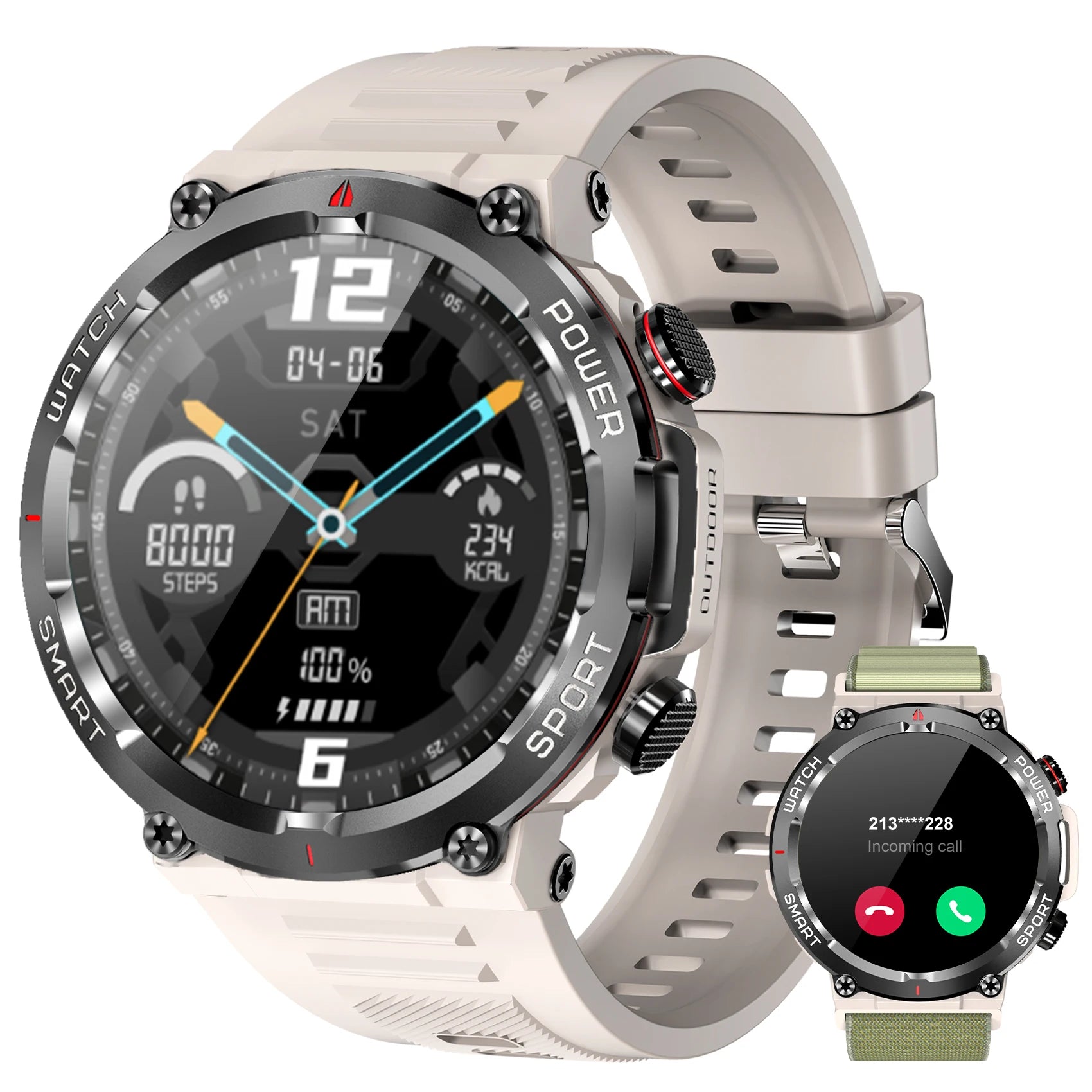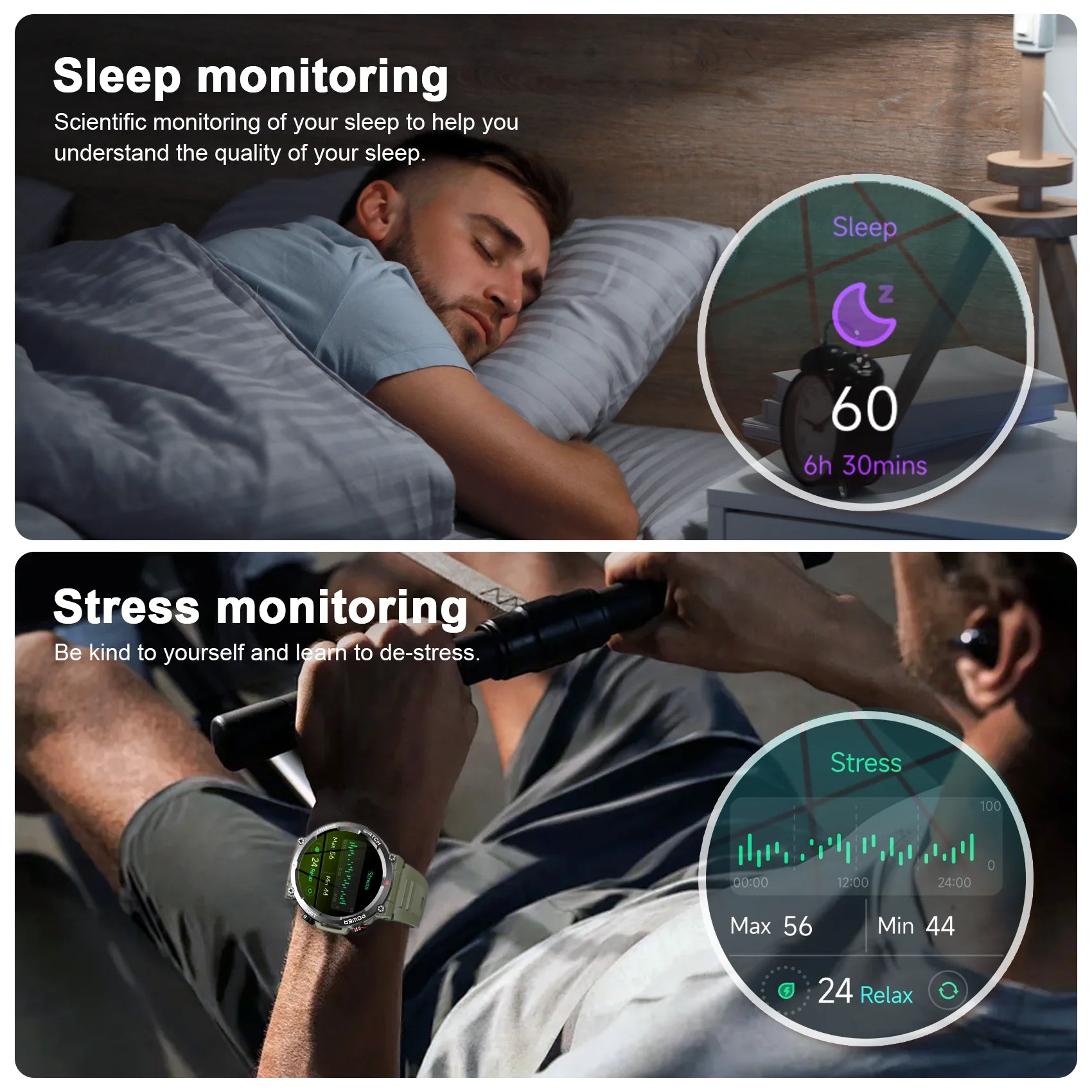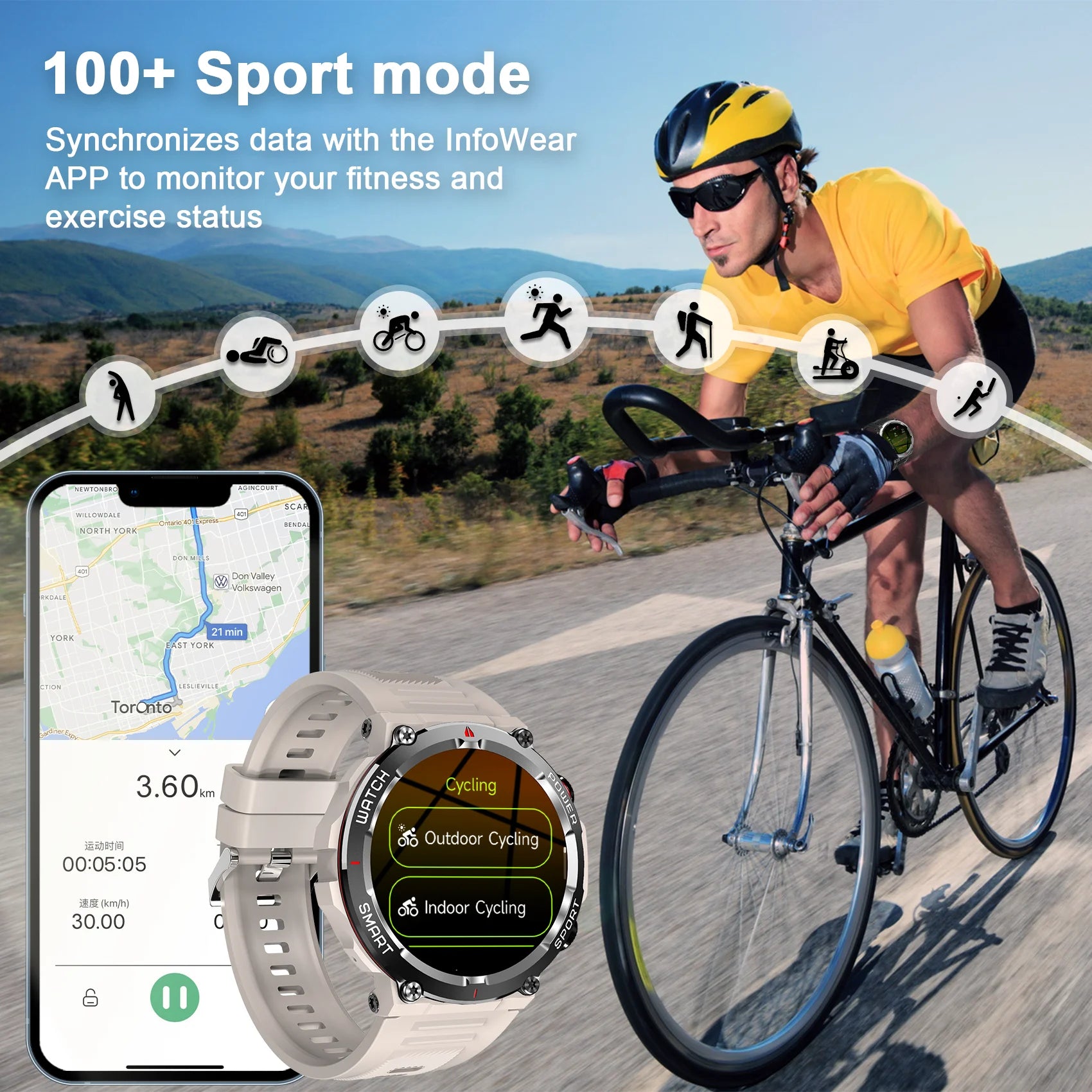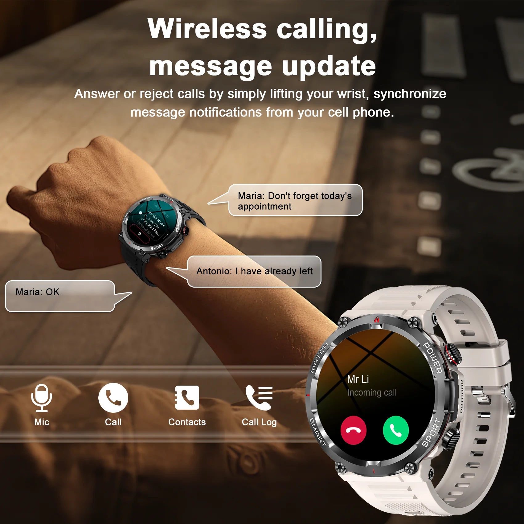 IOWODO Smartwatch for Men with Bluetooth Calling Outdoor Smartwatch Alloy Case 1.85-inch HD Full Touch Screen Fitness Watch