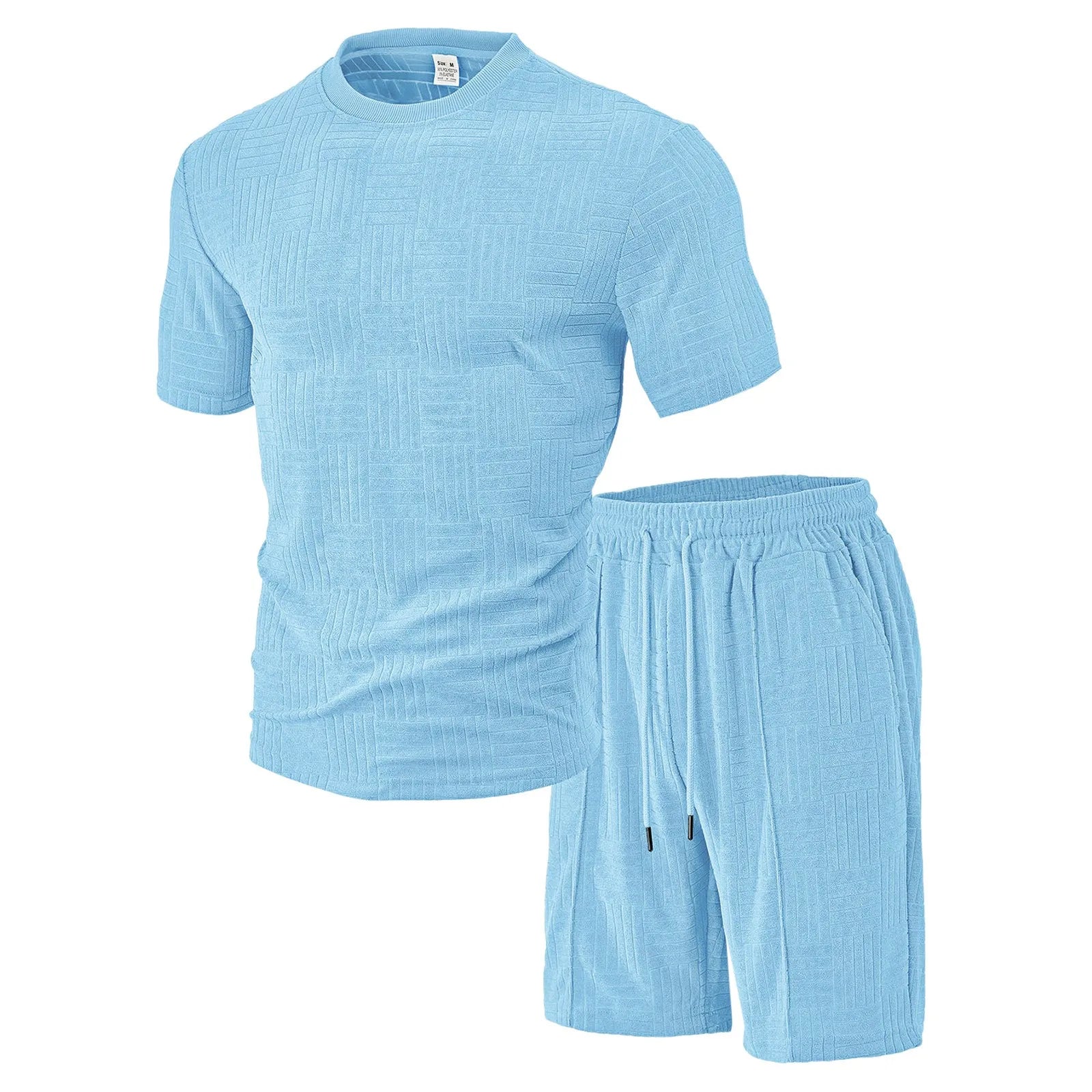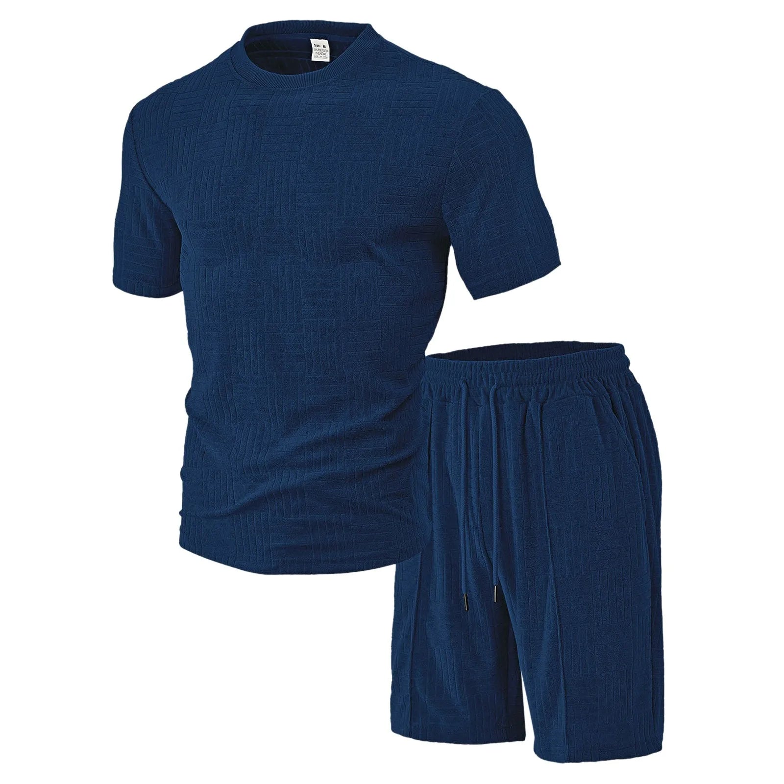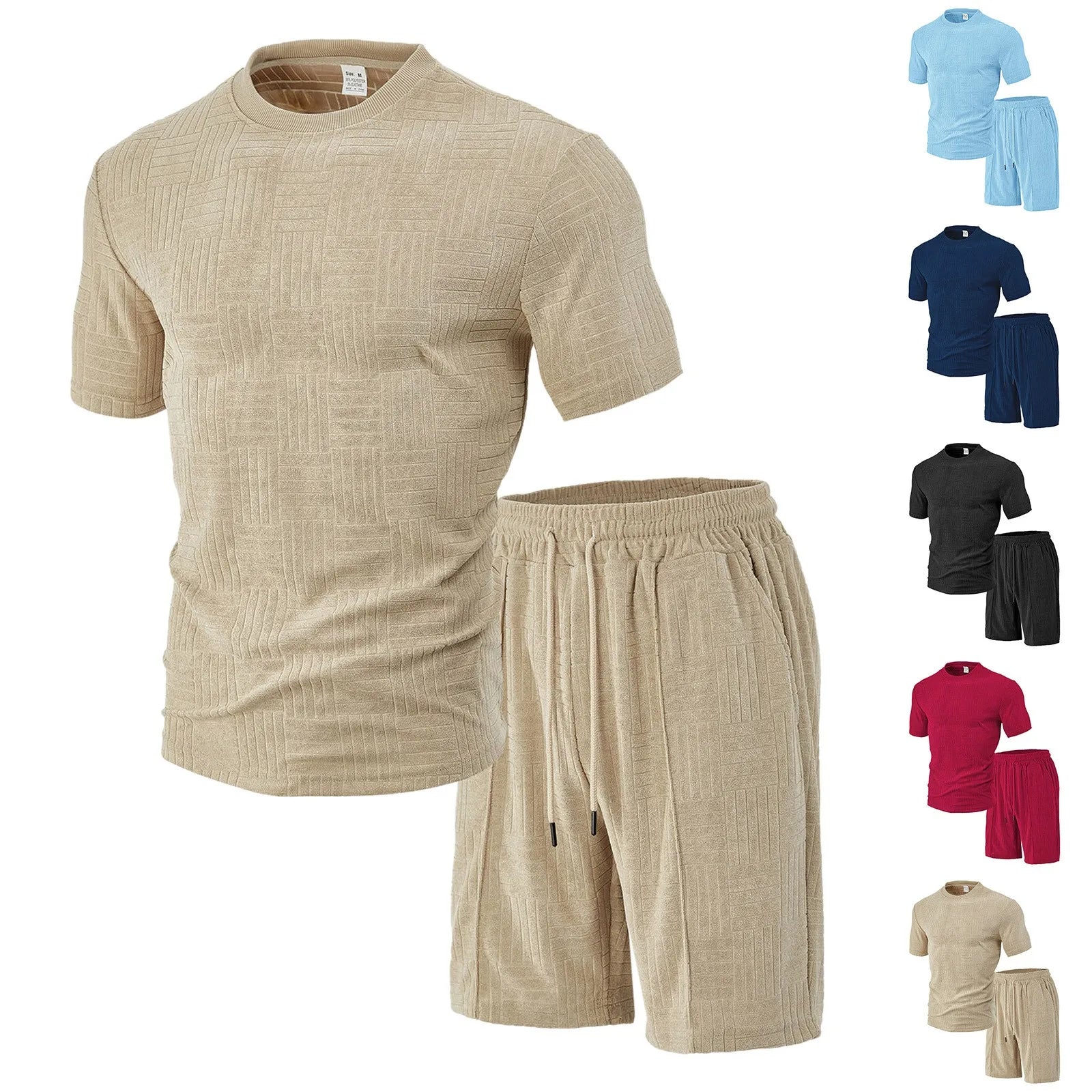 Men's 2 Piece Clothing Short Sleeve Crew Neck Summer T Shirt With Drawstring Casual Sports Shorts Set