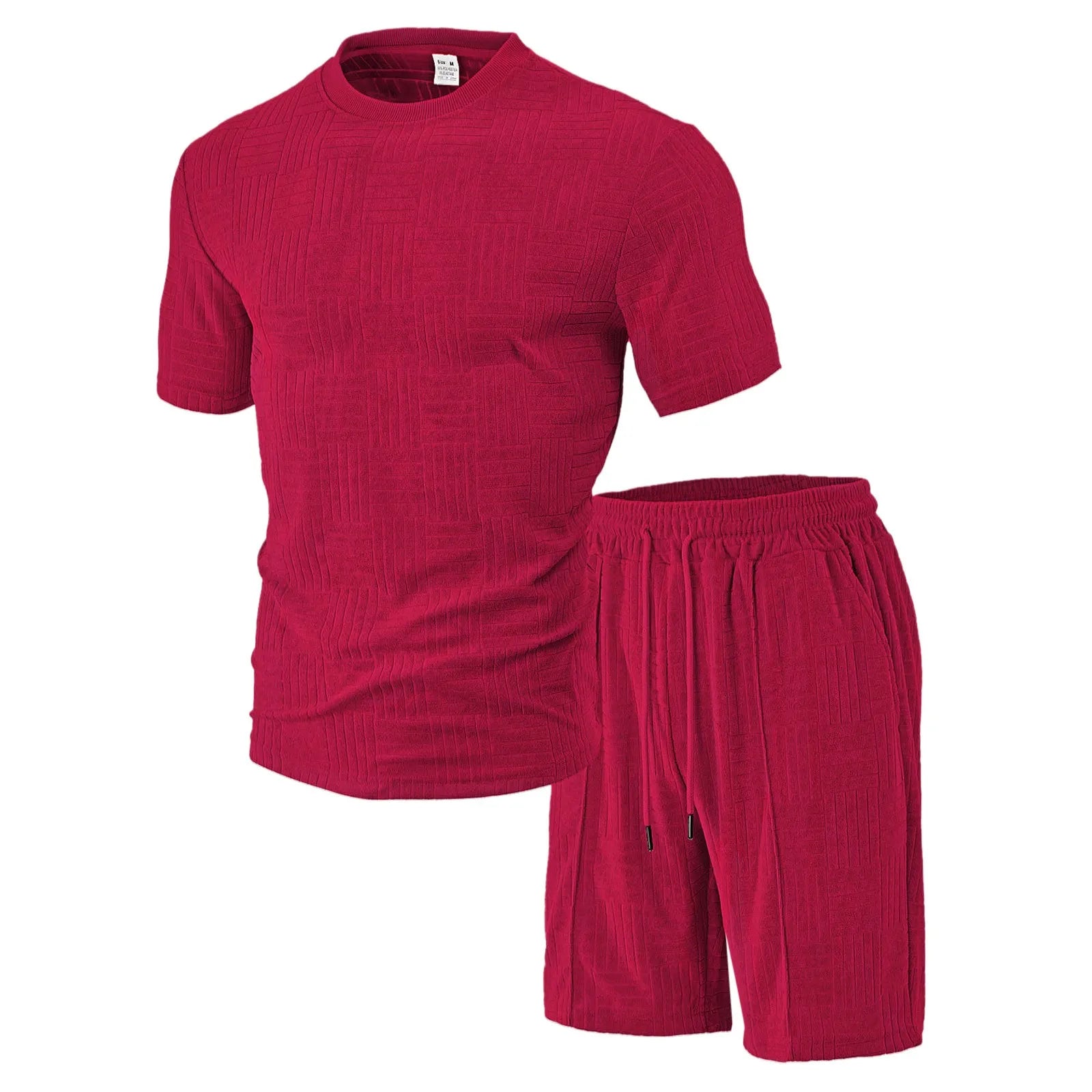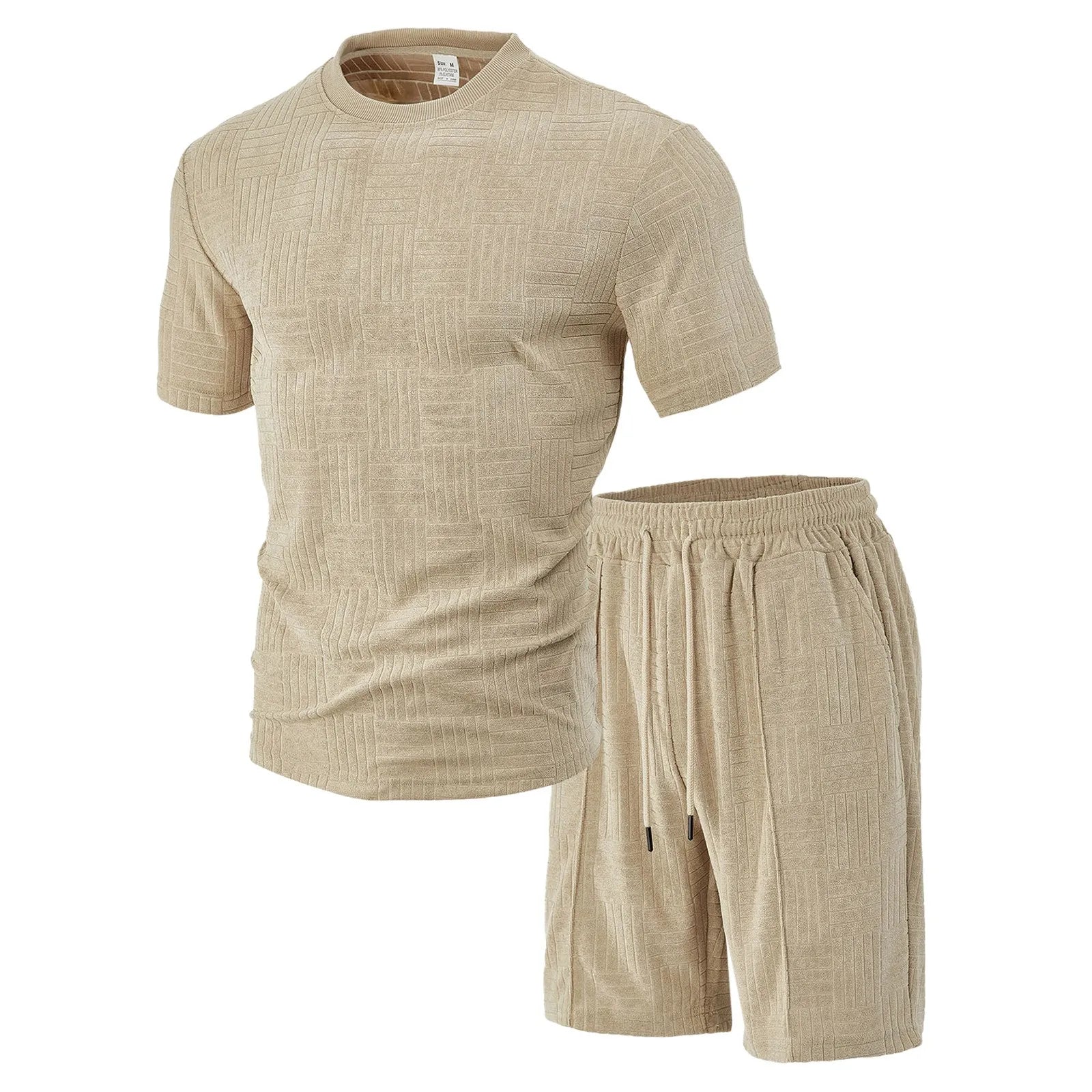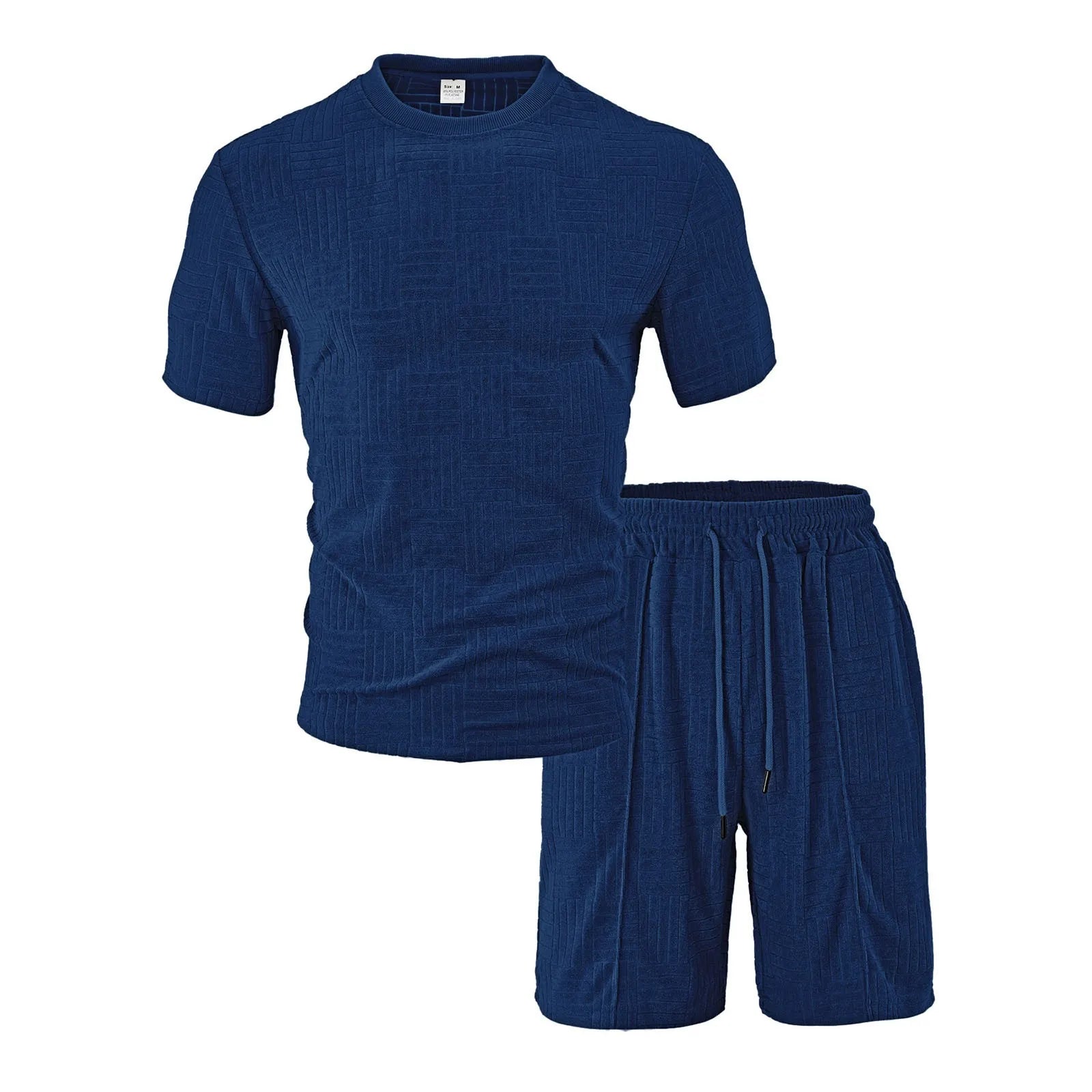 Men's 2-piece clothing short sleeve crew neck summer t-shirt with drawstring casual sports shorts set