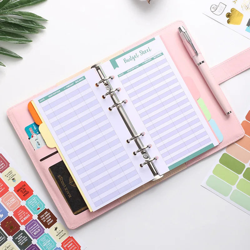 Pu A6 Binder Notebook Money Manager Budget Money Budget Planner With Pen Zipper Cash Envelope Budget Sheets Stickers Pvc Pockets