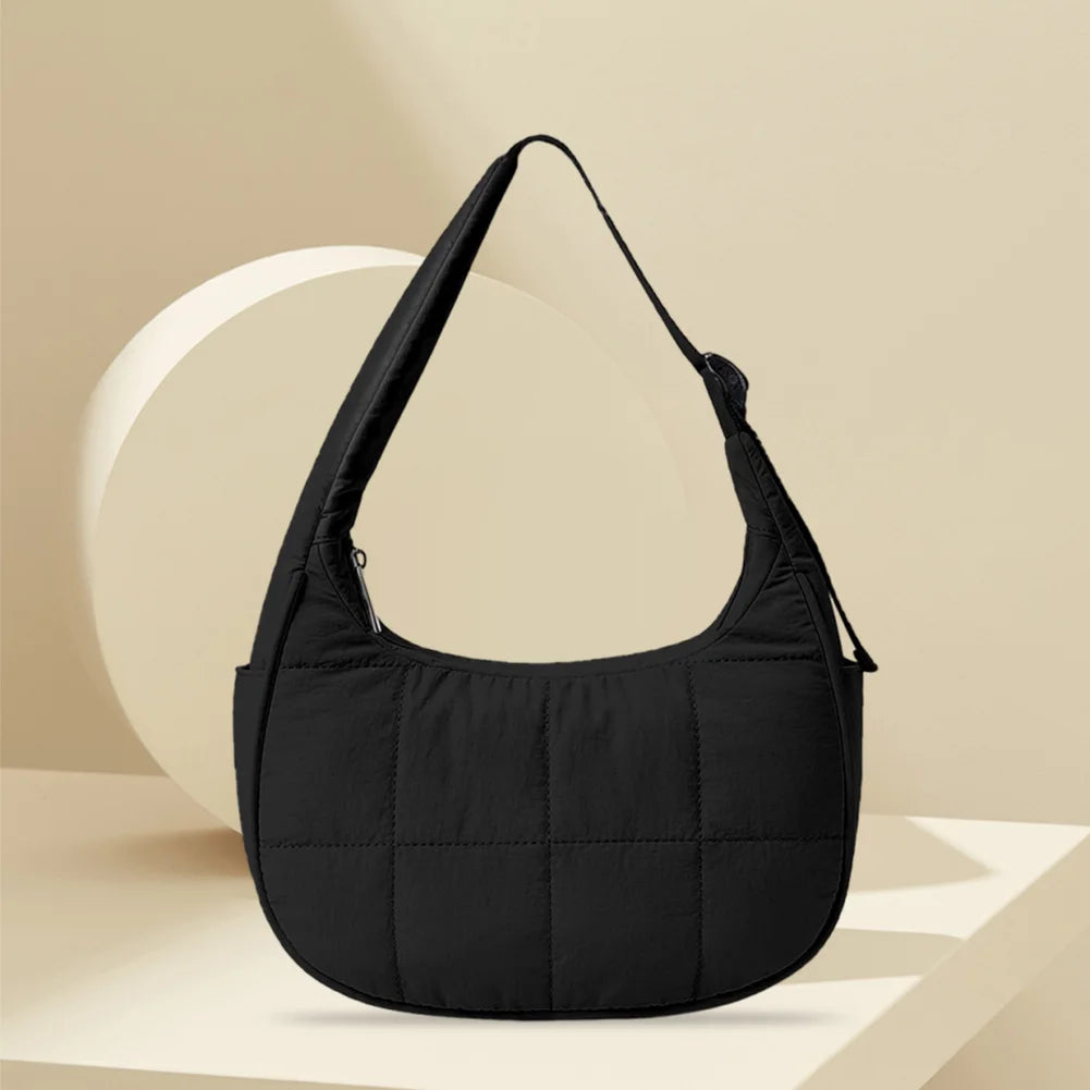 Puffer Crescent Bag for Women Quilted Shoulder Bag Nylon Adjustable Strap Shoulder Purse with Zipper for Work Travel