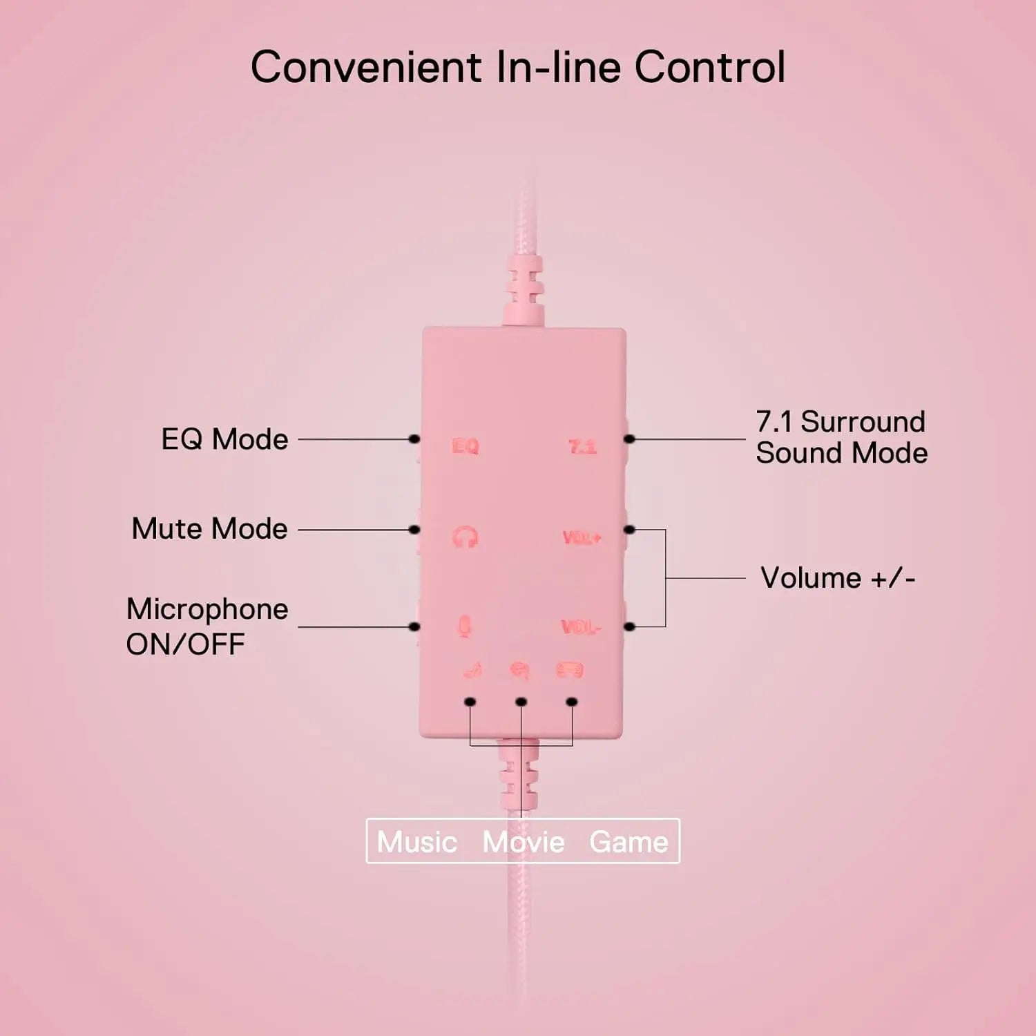 Redragon H376 Aurora Wired Gaming Headset, 7.1 Surround Sound Over-Ear Headphone w/40 MM Audio Drivers, Advanced EQ Mode