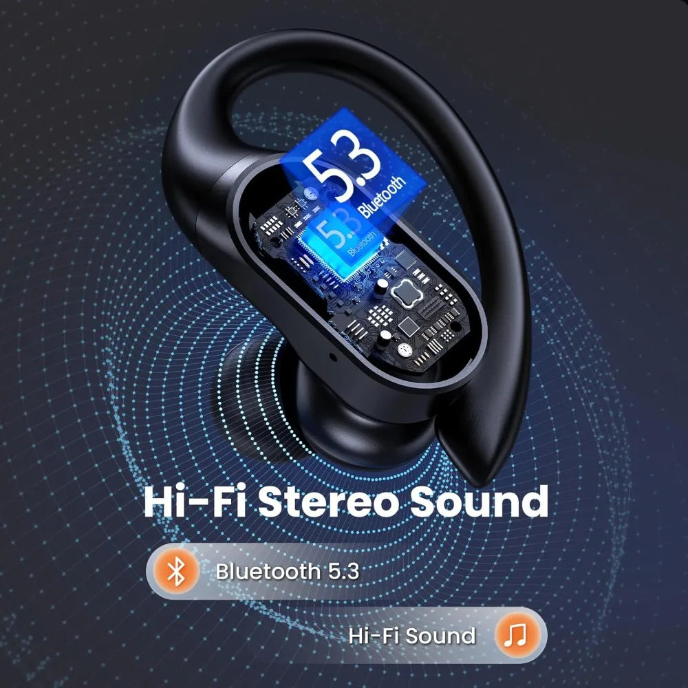 Wireless Earbuds - 90Hrs Playtime, IPX7 Waterproof, Bluetooth Earphones w/ Charging Case & Over-Ear Hooks for Sports